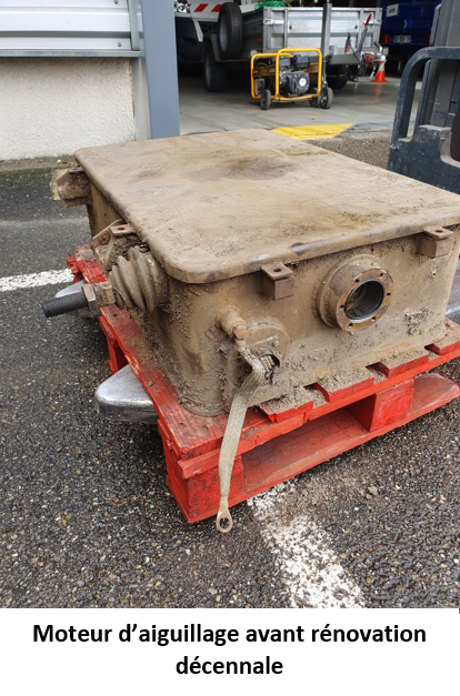 Pour la rénovation décennale des moteurs d’aiguillage, les tâches effectuées sont :